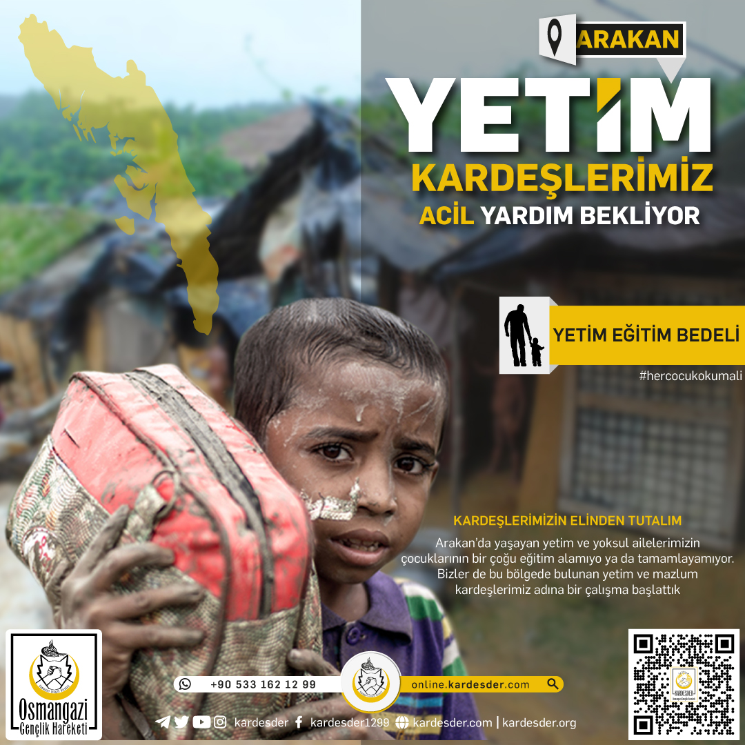 Dünya genelinde savaşlar, çatışmalar ve doğal felaketler nedeniyle milyonlarca çocuk yetim kalmakta ve eğitim olanaklarından mahrum kalmaktadır. Arakan, bu acıların en yoğun yaşandığı bölgelerden biridir. Arakanlı yetimler, savaş ve şiddet nedeniyle ailelerini kaybetmiş ve gelecekten umutsuz bir şekilde yaşamaya devam etmektedir. Eğitim yardımları, bu çocukların hayatlarında kalıcı değişiklikler yaratma potansiyeline sahiptir.