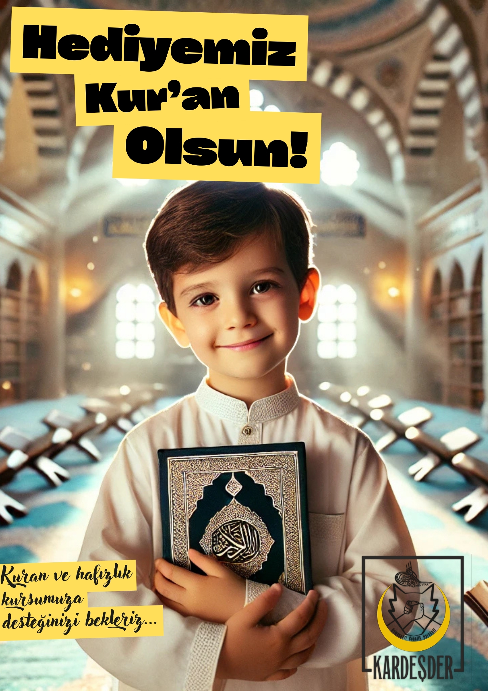Kur’an-ı Kerim’i öğrenen ve öğretenlerin en hayırlı insanlar olduğunu müjdeleyen Peygamber Efendimizin (sav) çağrısına siz de kulak verin! Türkiye’de bir Kur’an neslinin yetişmesine destek olarak, nesillerin manevi eğitimine katkı sunabilirsiniz.