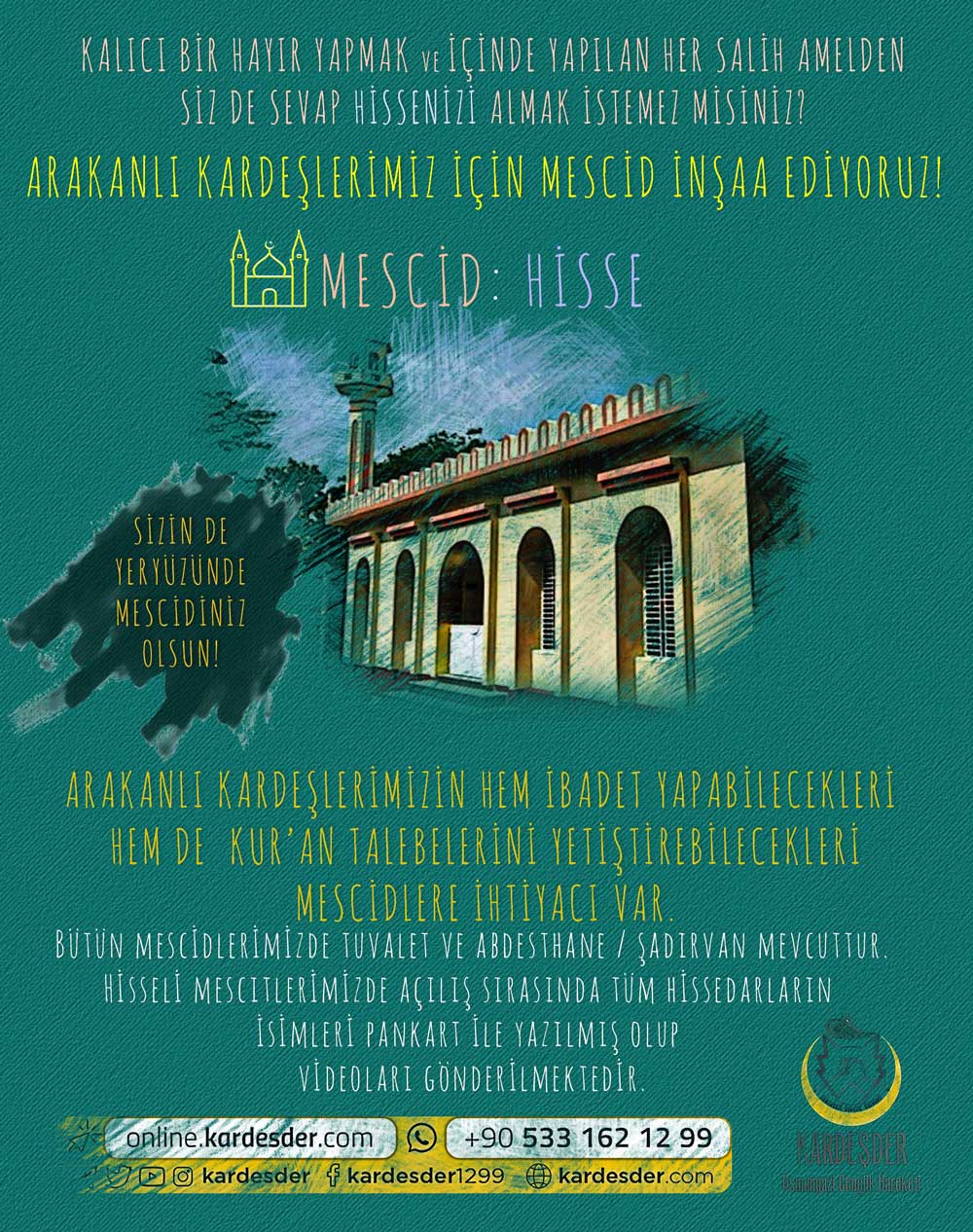 Hisseli mescitlerimizde açılış sırasında tüm hissedarların hisse miktarlarına göre sıralanıp isimleri pankarta yazılmış olup videoları gönderilmektedir.